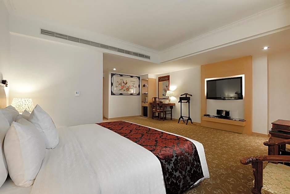 Featuring modern Oriental decor, this spacious suite features a separate living room. Private bathroom has a bathtub.